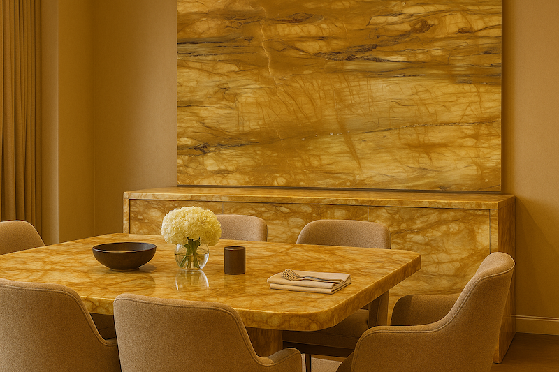 Masterpiece of nature, celebrated for its warm golden hues, flowing amber veins, and timeless Italian charm